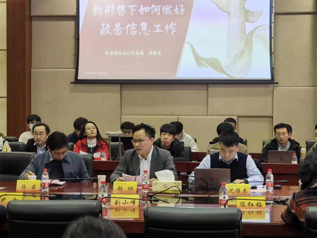 11月23日,为更好地贯彻落实省委省政府加强信息报送工作要求,进一步提高我校师生咨政建言的能力,更好服务于经济社会高质量发展,应我校成果转化与社会服务中心邀请,省政府办公厅信息处副处长沈维志作了题为“新形势下如何做好政务信息工作”的专题辅导,江苏省科协学术部主任陈君应邀参会。会议由副校长张炳主持。